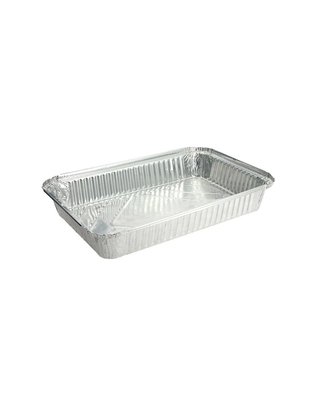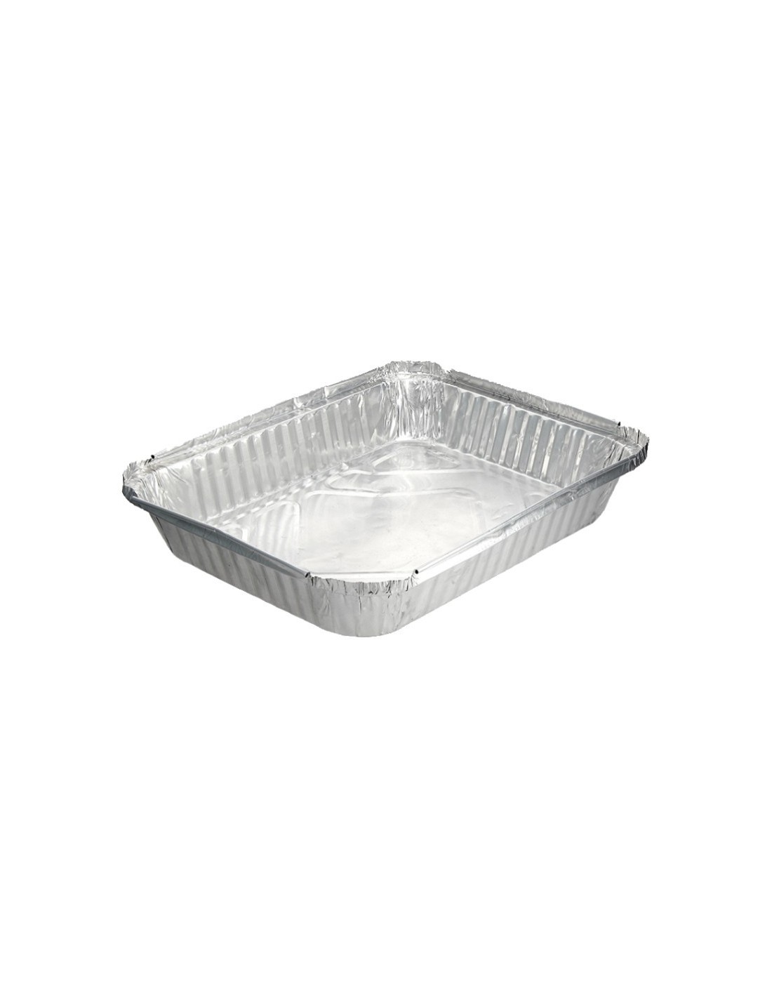 Envases rectangulares de aluminio para transporte de alimentos. Ideales para comidas para llevar y otros locales de hostelería.